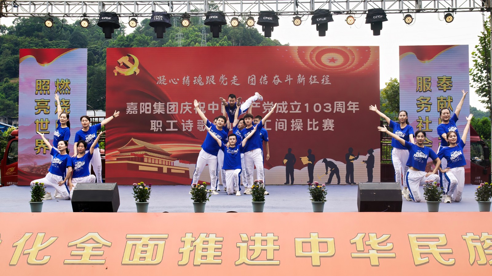 来自公司7个单位的8个节目精彩亮相,福溪粉煤灰公司带来的《火火的中国 火火的时代》拉开了比赛的序幕,代入感极强。物资供销公司、嘉阳煤矿、机电分公司、综合服务公司表演的《向前冲》《搏击操》《浪漫樱花》《健康动起来》轮番上场,各有千秋。川投峨旅公司带来的《同爱同在》动感十足,感染力强,迅速点燃现场气氛。公司机关表演的《舞动青春》青春洋溢,活力无限,让人眼前一亮。压轴出场的嘉阳煤矿表演的《一起向未来》将比赛推向高潮,独特新颖的创意,变幻多端的队形,热辣滚烫的音乐,强劲有力的节拍,将煤矿工人的精气神展现得淋漓尽致,也在8个节目中脱颖而出拔得头筹。