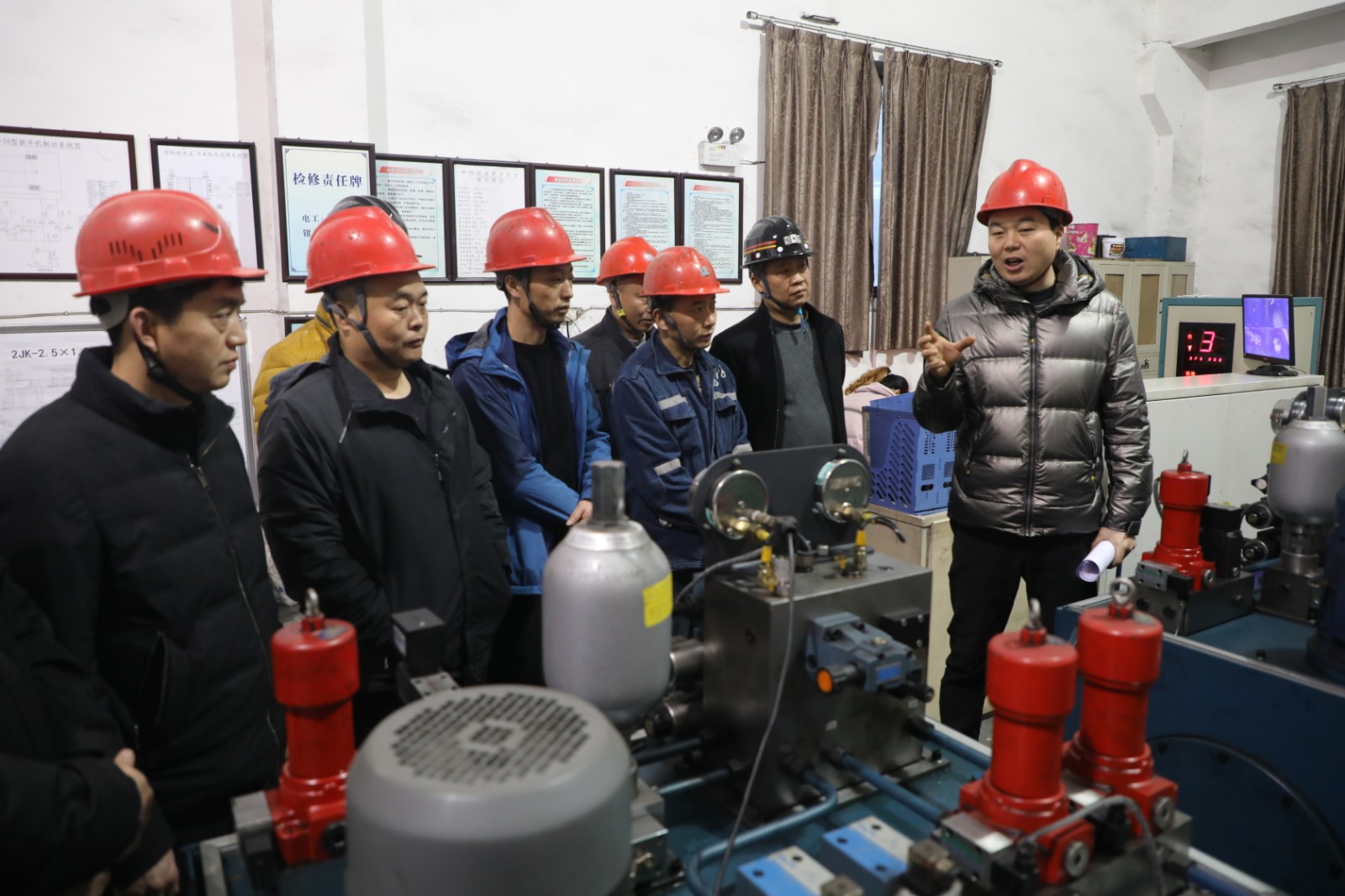 “反斜井提升机曾出现压力不稳定的状况,当时运用故障排除法,仅通过简单的二次过滤液压油,便成功解决了问题,避免了更换液压油的复杂工序。”“既节约成本,又大幅缩短工作周期,确实是好办法。”实操课聚焦盘型闸打不开、液压站压力不稳定等实际难点卡点问题进行现场演示、讲解与互动,理论学习回顾基本原理和维保知识,学员们知识得到升华,学技术钻技术的热情再次被“点燃”。