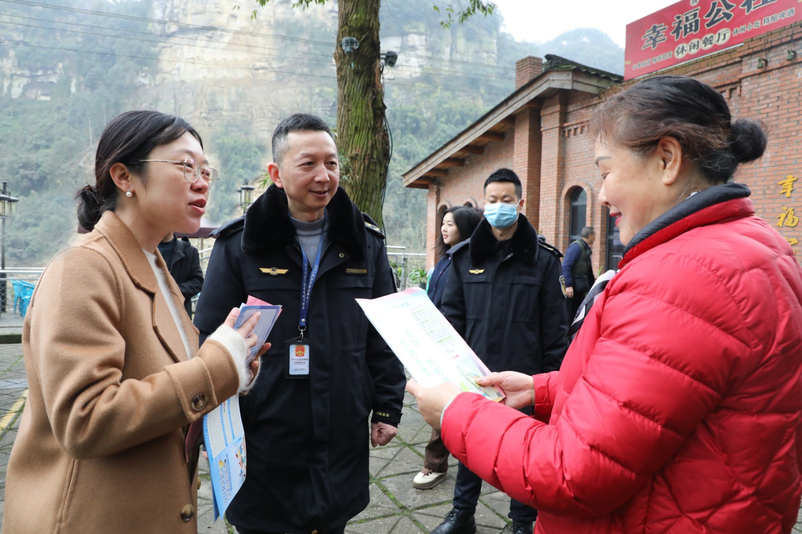 在芭蕉沟商业街,市场监督管理局的工作人员督导检查餐馆食品卫生安全,引导商户文明诚信经营,打造安全放心的消费环境;在景区服务点,公司法务部的同志向工作人员讲解《消费者权益保护法》相关知识,增强服务人员的法律意识、文明意识,做文明旅游践行者,共同营造诚信景区环境;活动现场还设置了法律咨询服务点,升力律所的律师向游客发放《民法典宣传折页》《“八五”普法宣传册》等普法资料,为游客们免费提供了法律咨询服务,用心用情把法律知识送到群众身边。