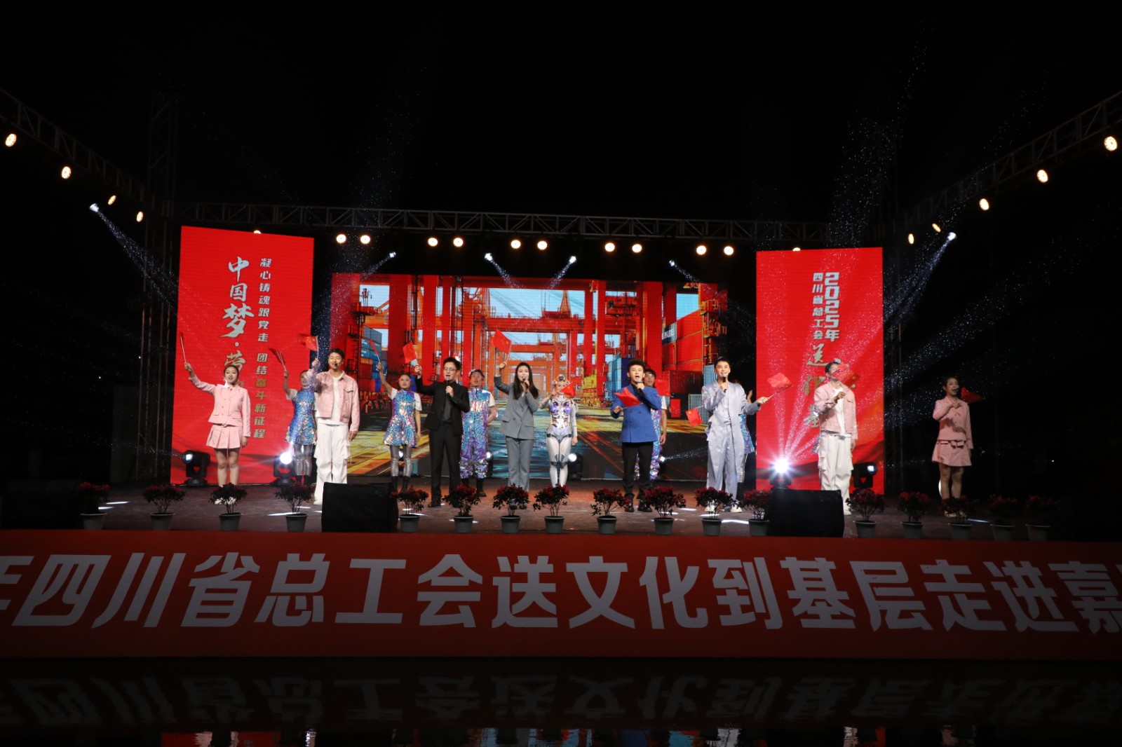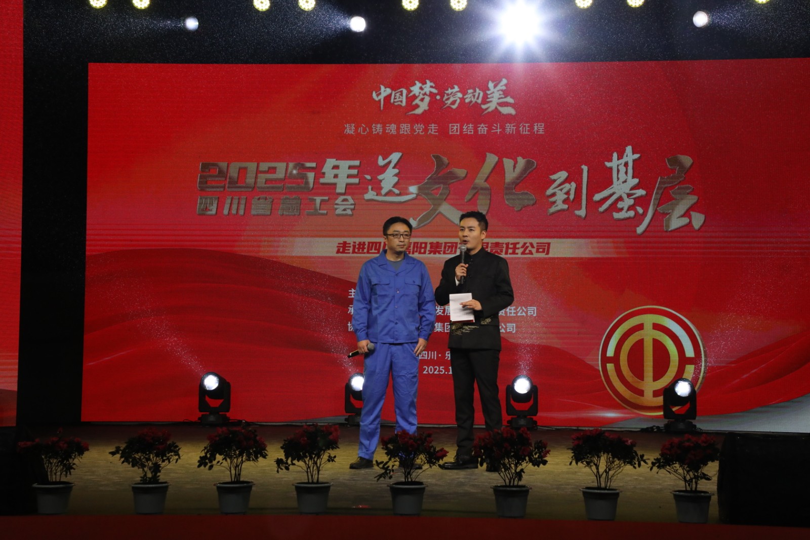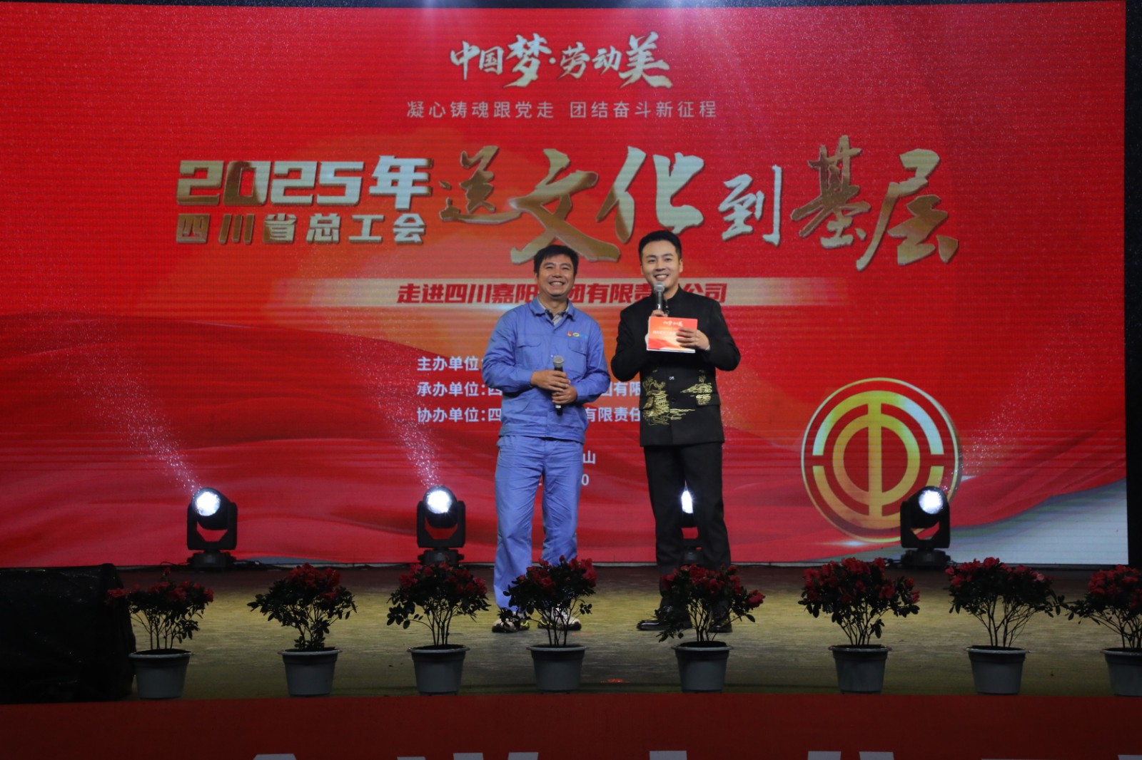 10月22日晚,由四川省总工会主办、四川能源发展集团承办,BBV中国协办的“中国梦·劳动美——凝心铸魂跟党走 团结奋斗新征程”2025年四川省总工会送文化到基层活动走进嘉阳集团,在风雨交织中为广大职工及家属带来了一场精彩纷呈的晚会。