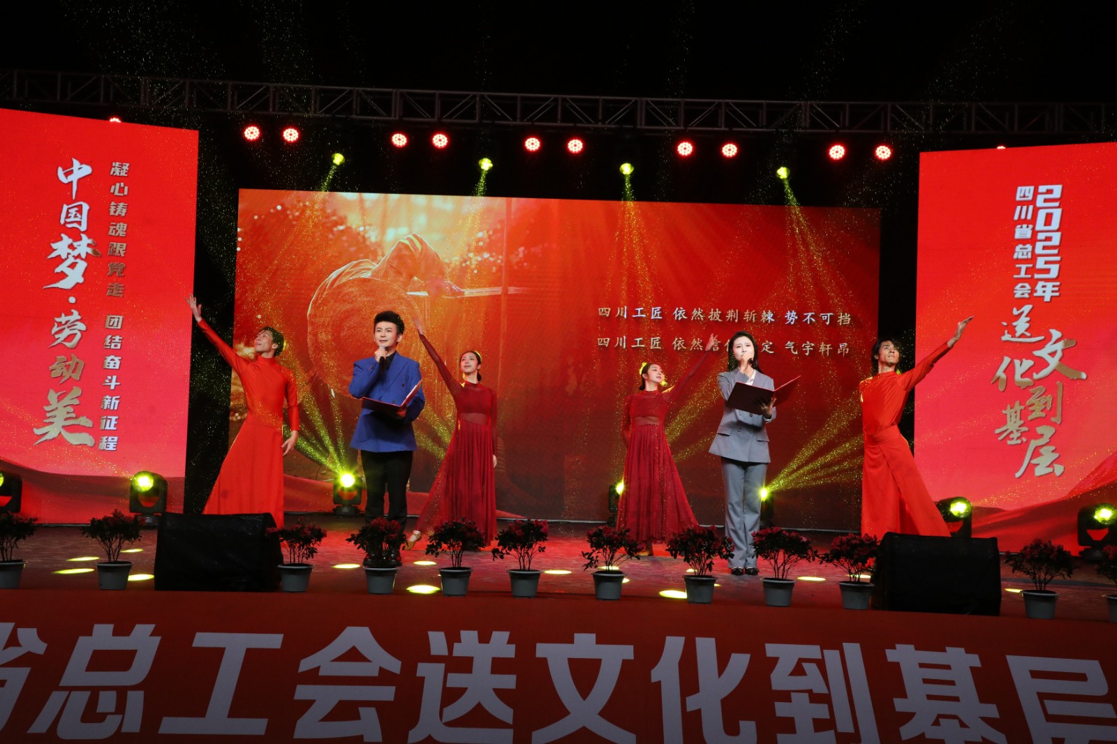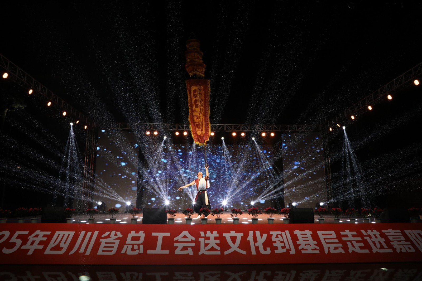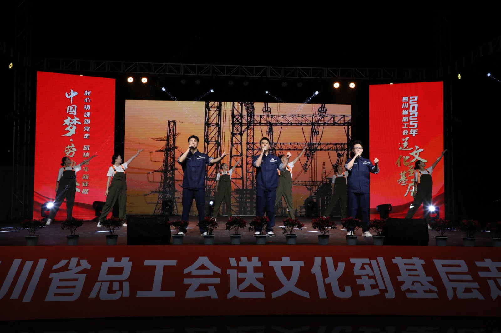 10月22日晚,由四川省总工会主办、四川能源发展集团承办,BBV中国协办的“中国梦·劳动美——凝心铸魂跟党走 团结奋斗新征程”2025年四川省总工会送文化到基层活动走进嘉阳集团,在风雨交织中为广大职工及家属带来了一场精彩纷呈的晚会。