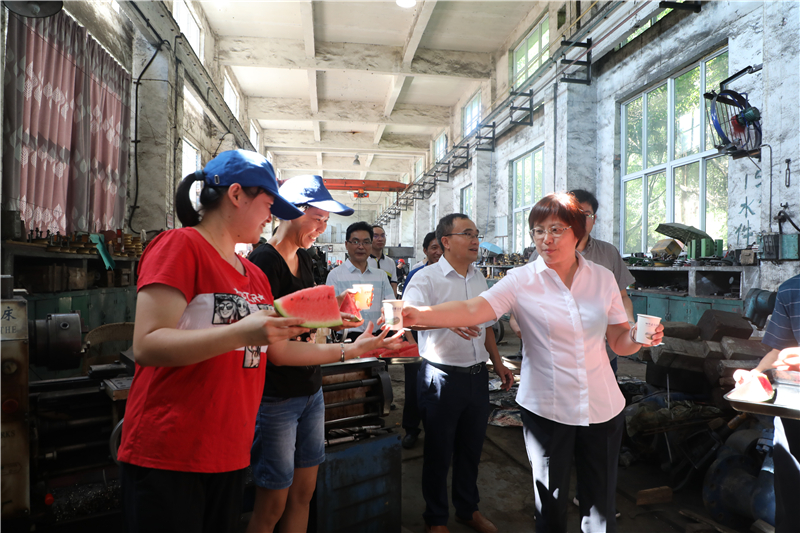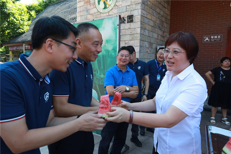 刘晓扬主席一行人不顾长途行车的劳顿,下车直奔骄阳下的嘉阳煤矿井口工业广场,下车间、走作业现场,刘晓扬主席一边招呼大家停下手中的工作休息,一边将西瓜、冰粉、矿泉水等解暑饮品送到职工手中,并关切地询问职工生产、生活等情况,嘱咐大家在高温作业时,要注意防暑降温,增强自身安全防范意识,合理安排作业内容,确保自身身体健康和企业安全生产。