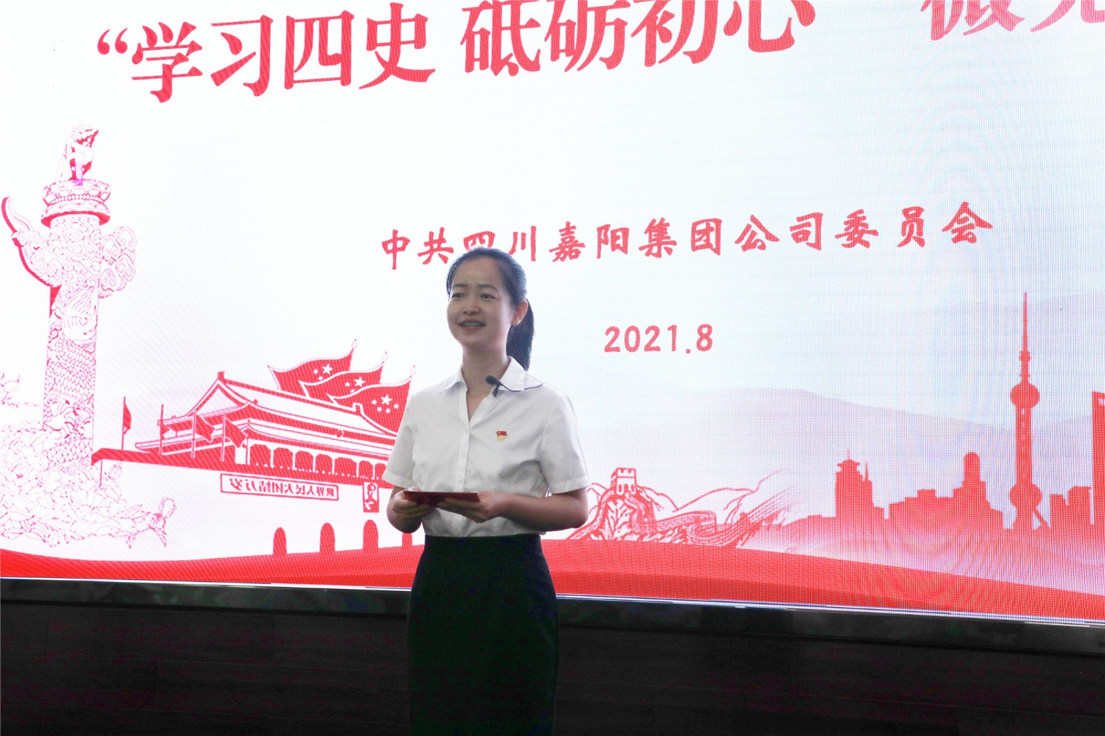 以微党课强党性、微宣讲聚能量、微交流凝合力,选手们围绕主题,将嘉阳历史与党史、企业工作与党史学习有机结合,深度诠释嘉阳精神与建党精神的一脉相承。党群工作部沈忱的《一部嘉阳史 百年奋进路》,再现了在民族危亡之际,嘉阳先辈们冒着生命危险将2000多吨设备、400多名员工抢运入川,为民族工业发展、抗日战争胜利作出不可磨灭贡献的家国情怀;技术发展部贾禄的《强化四史学习 彰显嘉阳担当》,从中国共产党成立的小故事谈起,讲述了红船精神的继承和发扬,嘉阳为了新中国的发展展现出的责任担当;嘉阳煤矿谭玮的《初心不改 青春不负》讲述了嘉阳煤矿安全调度监控中心的一群党员为了企业发展而奉献青春的故事。PPT、视频多媒体图文并茂,选手们娓娓道来、引人入胜,赢得了阵阵掌声。以赛促学内化于心,以学促干外化于行,他们用坚定的声音传播新时代的精神力量,激发职工敢于担当的内生动力,凝聚不负韶华的奋进力量。党委副书记谢建国对比赛进行点评,并向“致敬建党100周年”征文比赛获奖选手颁奖,党委书记、董事长杜勤为微党课比赛获奖选手颁奖。