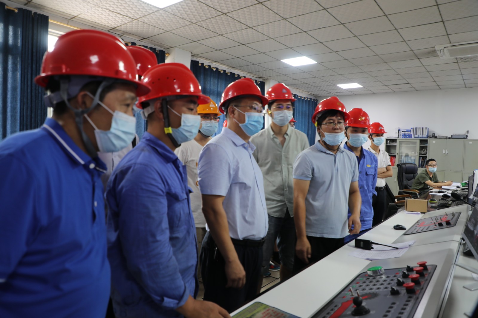 “集控中心运行正常”“皮带机头安全确认正常”“刮板机头安全确认正常”“采煤机安全确认正常”……“报告范总,嘉阳煤矿智能化综合采煤三机配套一键启动准备完毕,可以启动,请指示”,“启动”!随着总经理范勤英亲自按下启动键,设备自动按顺序开始了启动,工业广场上顿时响起了刮板运输机、采煤机巨大的轰鸣声。皮带机运行正常,刮板机运行正常,采煤机运行正常……乳化液泵站工况良好,水处理系统工况良好,电液控及自动控制系统工况良好……从智能化综采外出考察、设备选型、采购到三机配套一键启动地面联合调试,历经200多个日日夜夜的嘉阳智能化综采项目取得了阶段性胜利。
