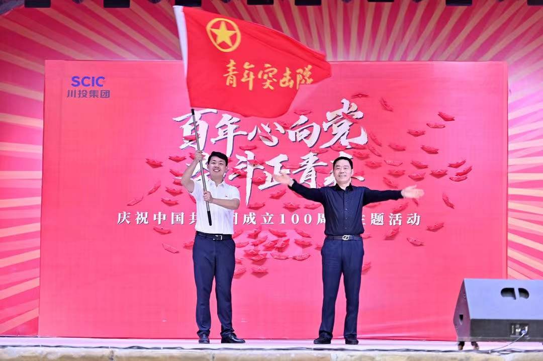 “我们身在百米井巷,我们心中充满阳光,在抗战烽火中诞生,在共和国旗帜下成长,明亮的矿灯指引方向,笑迎煤海滚滚浪……”庆祝共青团成立100周年主题晚会在《嘉阳矿歌》的歌声中拉开帷幕,川投集团党委副书记邓凯致辞并勉励青年职工们牢记共青团使命,发扬优良作风,传承嘉阳“燃烧精神”,贡献青春力量。邓凯书记分别授予嘉阳煤矿团总支和川投峨旅旅游讲解团队“青年突击队”和“青年文明号”的荣誉旗帜。晚会现场红歌联唱《我和我的祖国》《年轻的朋友来相会》《龙的传人》《五星红旗》、朗诵《青春》、大合唱《少年》,一个个节目精彩纷呈,为大家呈现了一场精彩绝伦的视听盛宴。