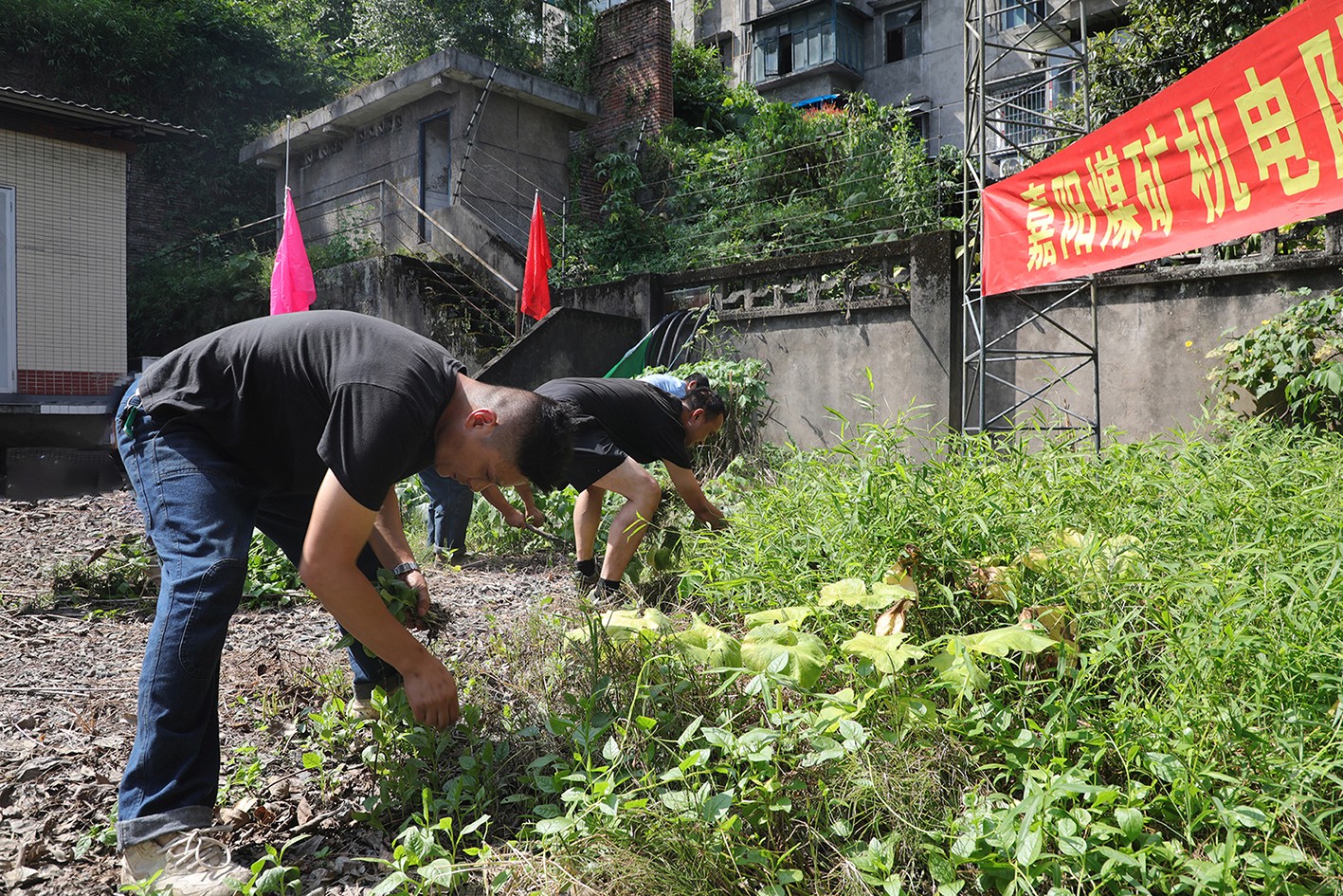 8月22日,嘉阳煤矿机电队党支部组织开展“义务除草展新颜,党员齐心保供电”主题义务劳动,旨在全力保障35kV变电站汛期供电安全。